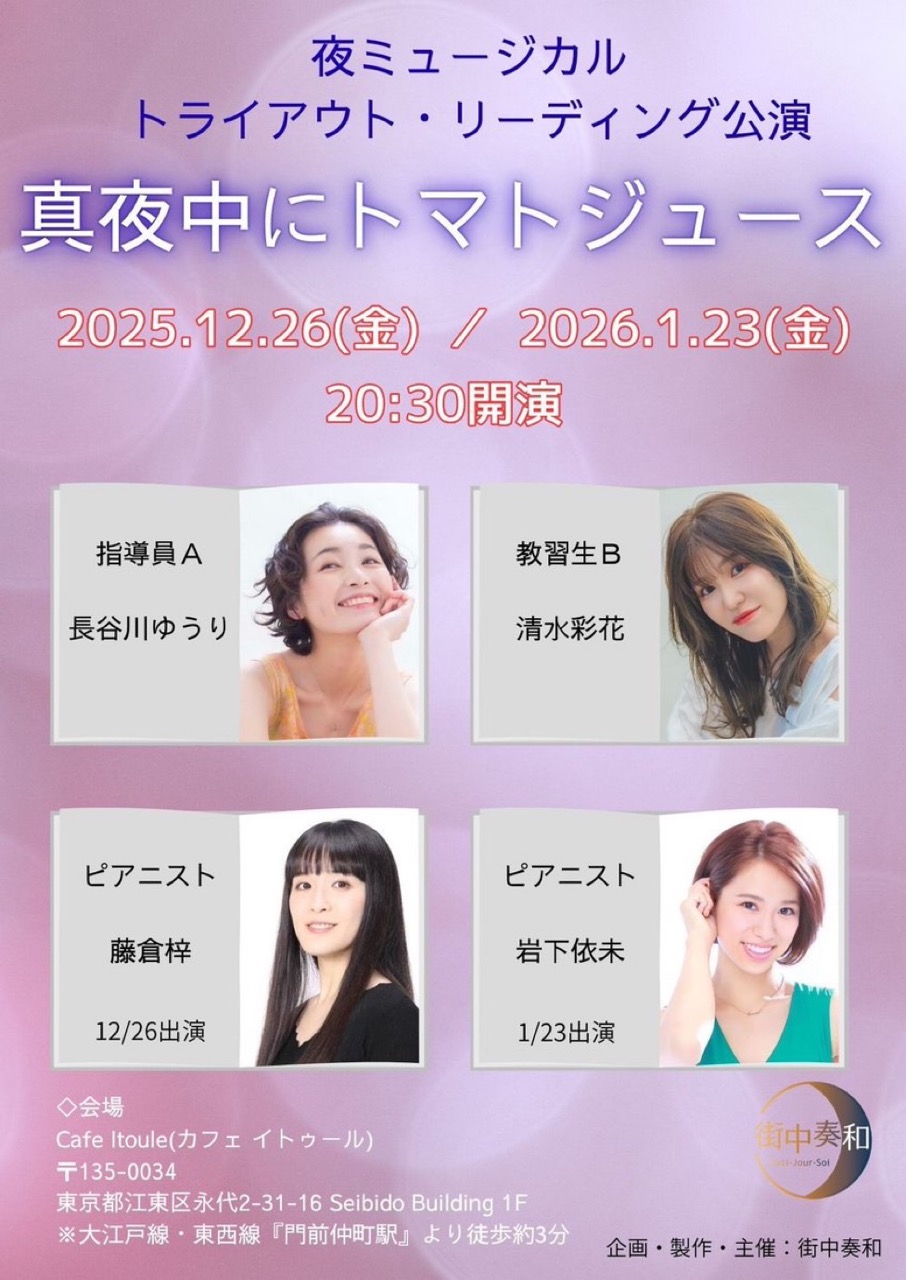 街中奏和さんの公演、 『真夜中にトマトジュースを』に出演させていただくことになりました!